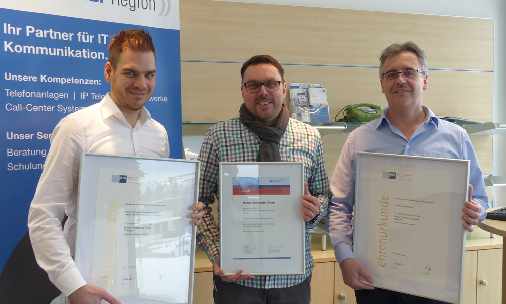 Die besten Auszubildenden unserer Region wurden am 06.12.2017 von Harald Herrmann, dem Präsidenten der Handwerkskammer Reutlingen, und von Karl-Heinz Goller, Leiter der Ausbildungsabteilung in der Festhalle in Albstadt-Ebingen geehrt. Unter den Preisträger befindet sich auch unser Mitarbeiter Moritz Abrell, der zum Kammersieger der Handwerkskammer Reutlingen, sowie zum 3. Landessieger im Handwerksberuf „Elektroniker – Fachrichtung Informations- und Telekommunikationstechnik“ ausgezeichnet wurde.