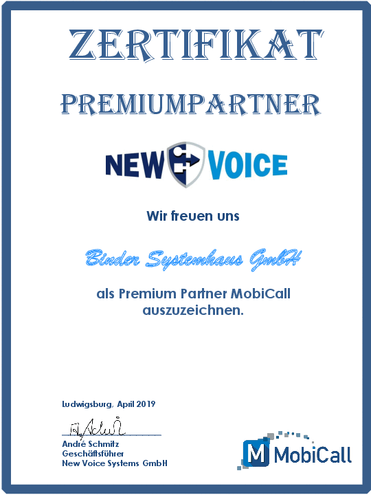 Premiumpartner Status bei New Voice Systems GmbH